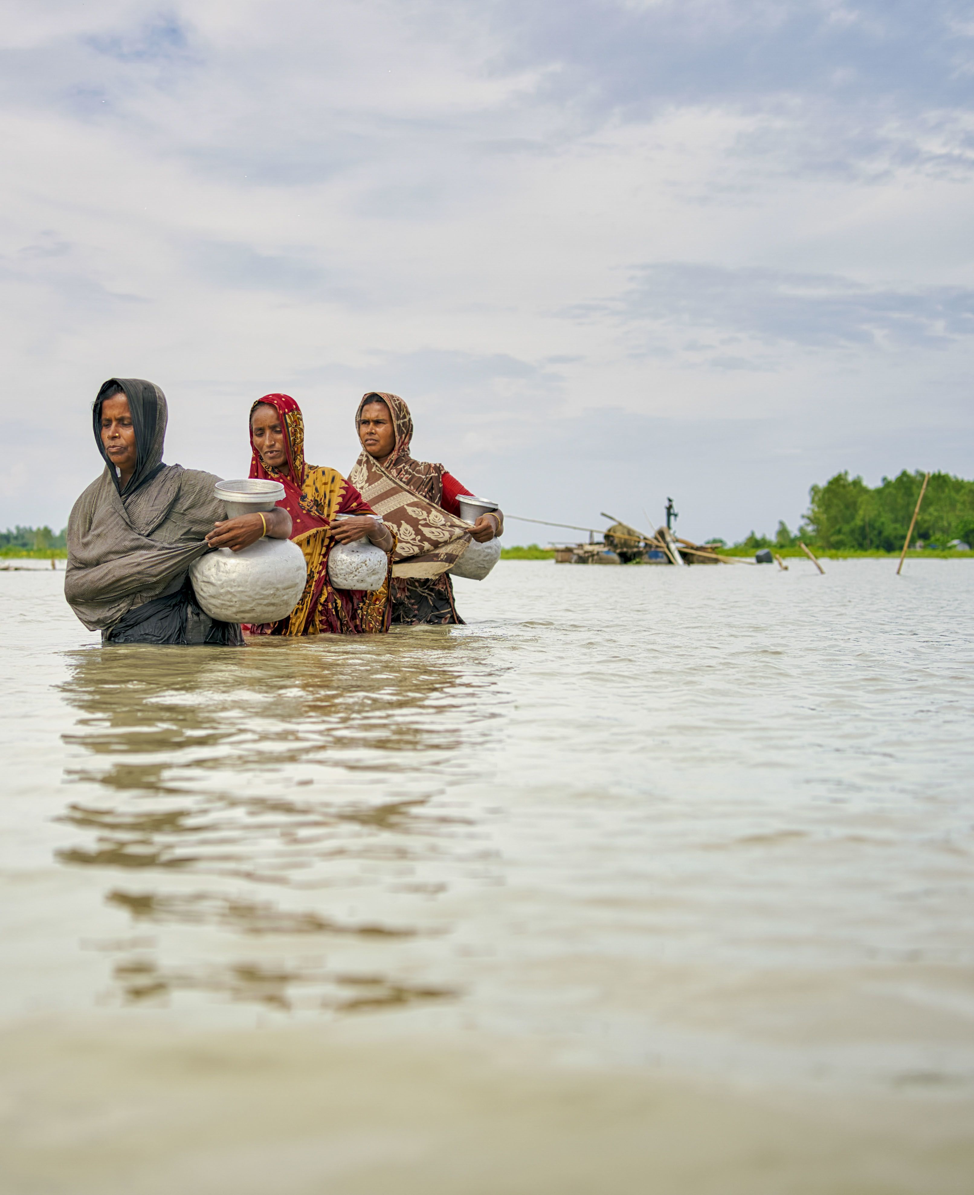 Background image: Three women are carrying drinking water through a flooded field in Rajshahi state, Bangladesh. Due to its location and high population density, Bangladesh is one of the world’s most disaster-prone countries. © WFP/ Sayed Asif Mahmud