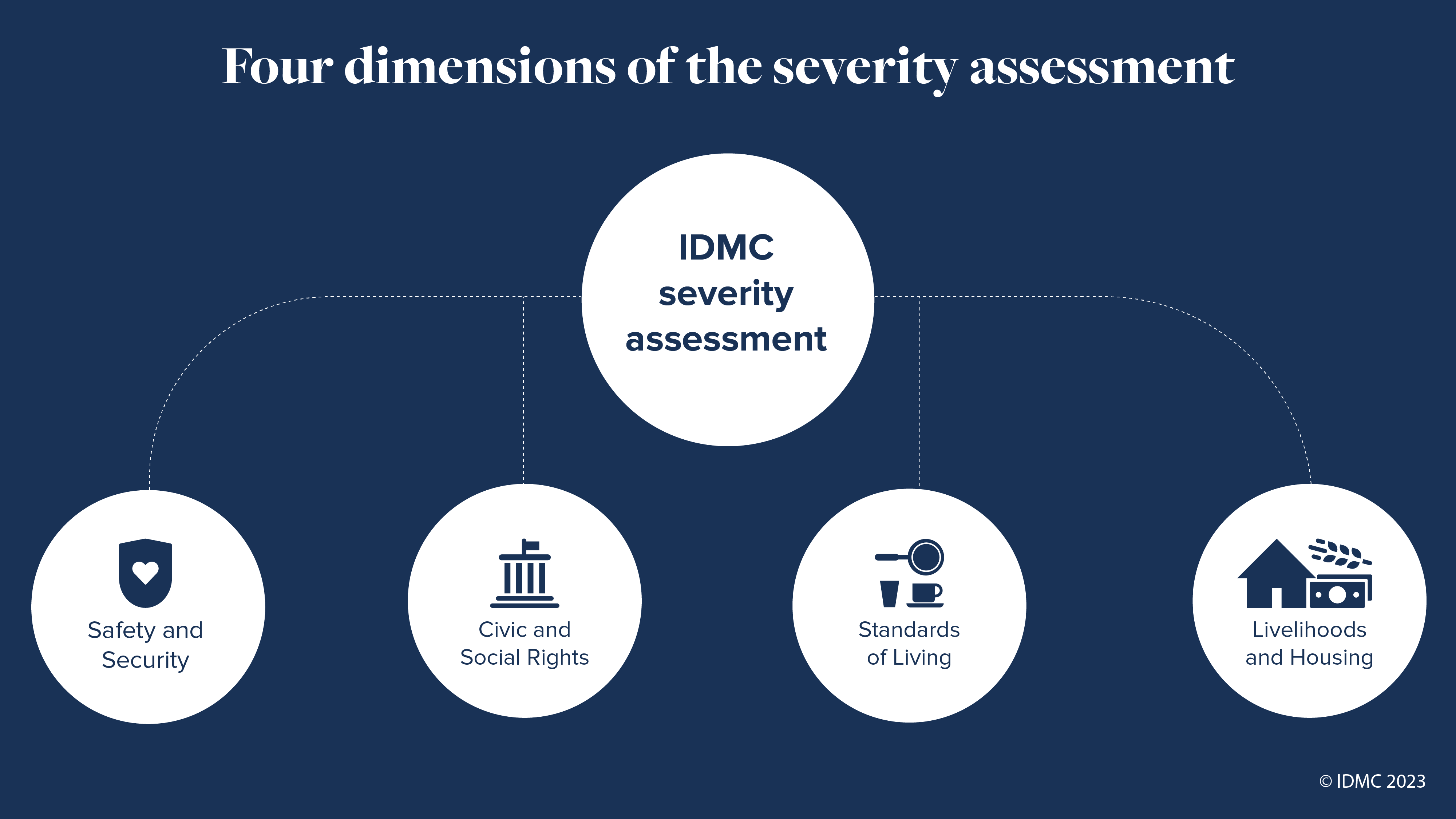 The annual severity assessments compare the living conditions of internally displaced households to those of returnee and non-displaced households in the same country across four dimensions. © IDMC