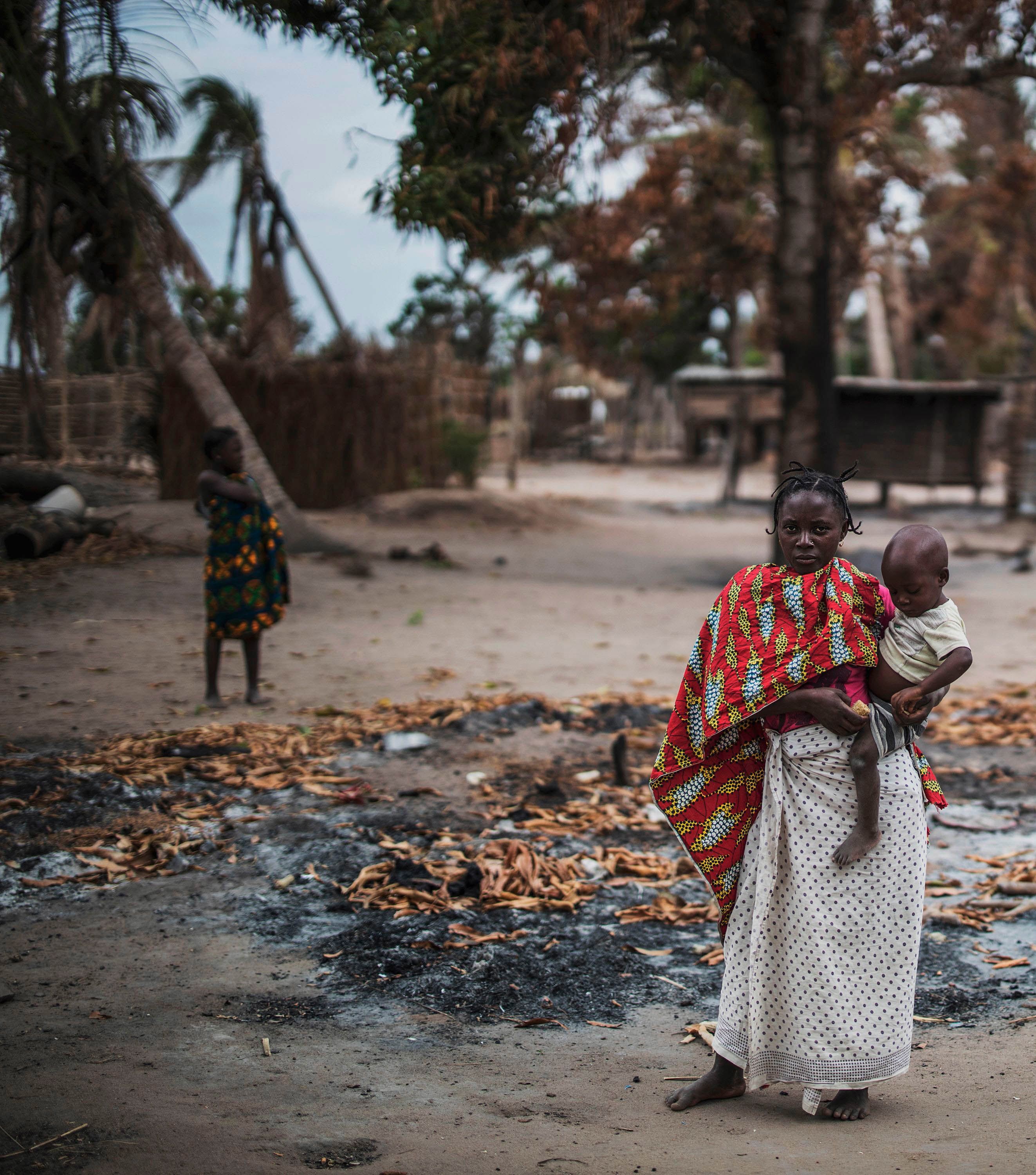 Background image: A woman holds her child while standing in a burned-out area in Cabo Delgado province, Mozambique. This year, new violence sparked a surge in internal displacement in the province. © Marco Longari/AFP/Getty Images