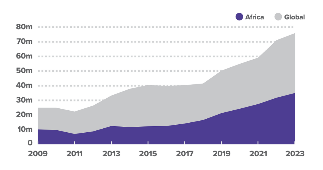 With 35 million internally displaced people, Africa remains the continent most affected by displacement, hosting nearly half of the global total and three times more than it did in 2009.
