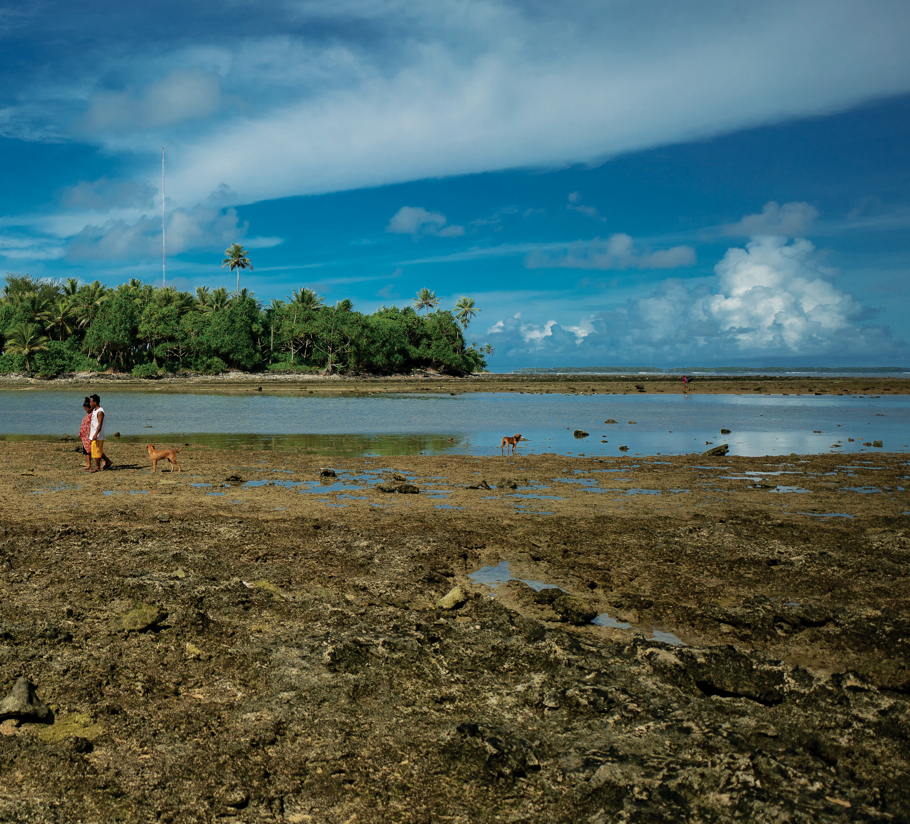 Background image: The Marshall Islands face increasing risks of displacement due to climate change and rising sea levels, highlighting the urgent need for adaptation measures to protect vulnerable communities. © ADB